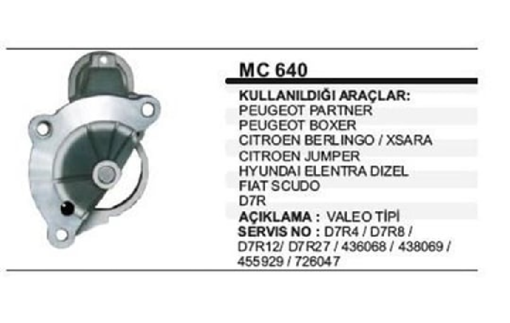 MARŞ ÖN KAP.> PEUGEOT PARTNER BOXER CİTROEN BERLİNGO XSARA JUMPER HYUNDAI ELENTRA DİZEL H-100/MIT.L3 MC640