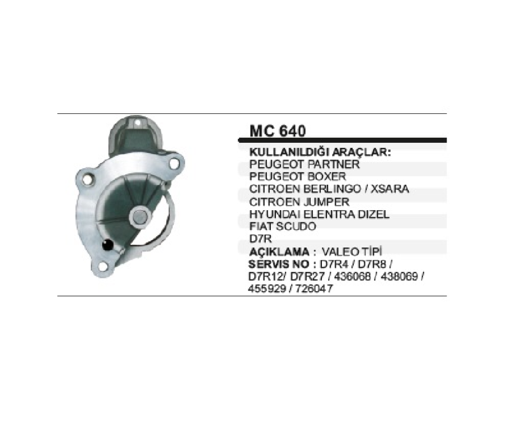 MARŞ ÖN KAP.> PEUGEOT PARTNER BOXER CİTROEN BERLİNGO XSARA JUMPER HYUNDAI ELENTRA DİZEL H-100/MIT.L300 FİAT SCUDO D7R13D REMA-MC640