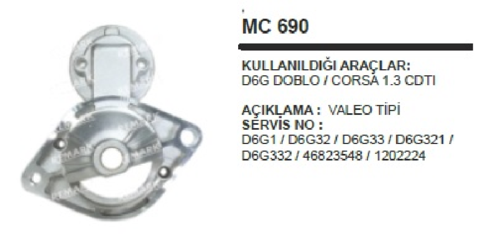 MARŞ ÖN KAP.VALEO TİPİ D6G DOBLO/CORSA 1,3 CDTI MC690