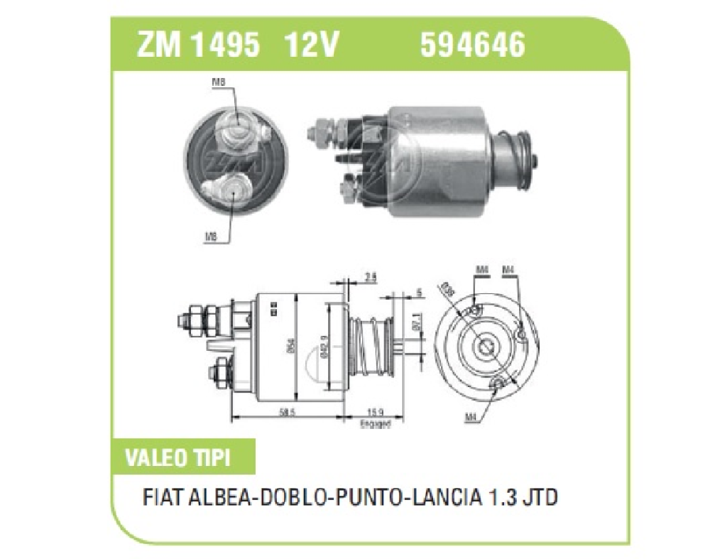 MARŞ OTOM.12V 1,8KW > VALEO TİPİ FIAT GRANDE PUNTO ALBEA-DOBLO/OPEL 1.3 MULTIJET LANCİA 1.3 JTD FİŞSİZ 3 DELİK PİSTONLU ZM-1495