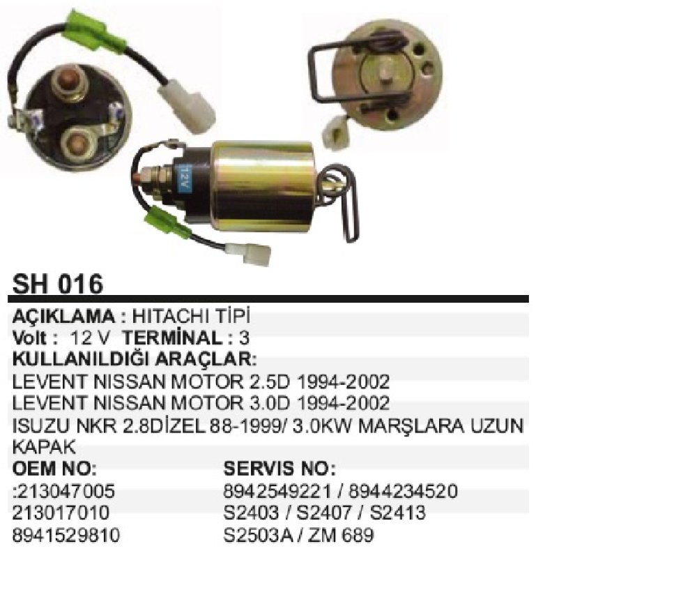 MARŞ OTOM. 12V 3 TERMİNAL>HİTACHİ TİPİ LEVEND NİSSAN 2.5D-3.0D 1994-->2002/ ISUZU NKR 2.8D 1988-->1999/ 3.0KW MARŞLARA UZUN YAYLI REMA-SH016