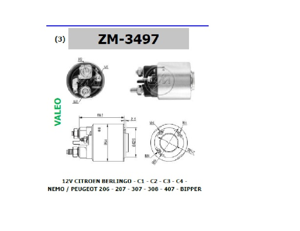 MARŞ OTOM. 12V CITROEN BERLINGO-C1-C2-C3-C4-NEMO / PEUGEOT 206-207-307-308-407-BIPPER ZM-3497