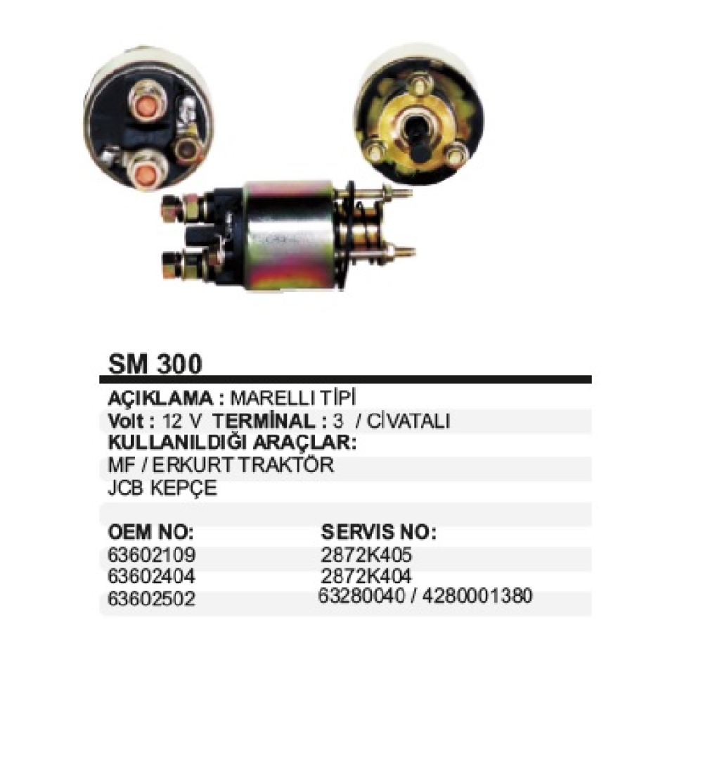 MARŞ OTOM 12V. MARELLİ TİPİ 3 ÇİVATALI FİAT DUCATO PEUGEOT BOXER FORKLIFT, PERKINS, MF TRAKTÖR, ERKUT TRAKTÖR FİAT PUNTO/MF 3050 PHANTOM JCB /CAT KEPÇE V184 HİDROMEK KEPÇE BEKO LOADER ( EN:89 BOY:143,5 ) REMA-SM300