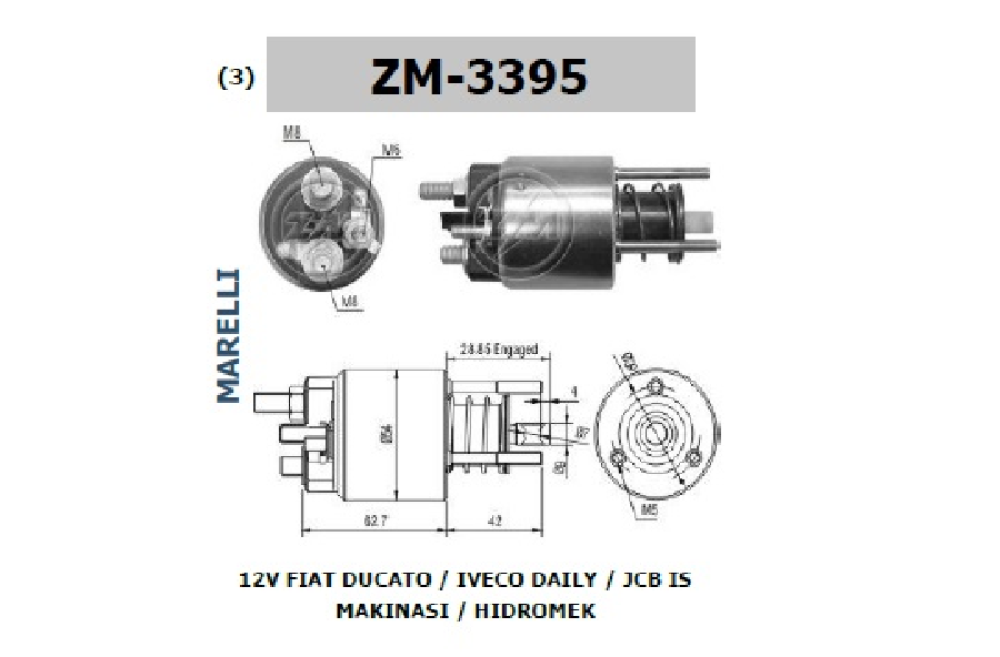 MARŞ OTOM 12V. MARELLİ TİPİ 3 ÇİVATALI FİAT DUCATO PEUGEOT BOXER FORKLIFT, PERKINS, MF TRAKTÖR, ERKUT TRAKTÖR FİAT PUNTO/MF 3050 PHANTOM JCB /CAT KEPÇE V184 HİDROMEK KEPÇE BEKO LOADER ( EN:89 BOY:143,5 ) ZM-3395