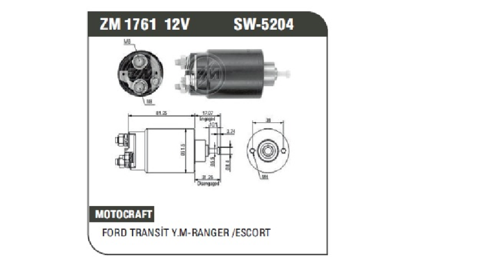 MARŞ OTOM.12V MOTOGRAF>FORD CONNECT, TRANSİT V184, FİESTA,FUSİON, RANGER, ESCORT, FOCUS, MONDEO 1,4/1,6TDCİ (CİVATALI) ZM-1761