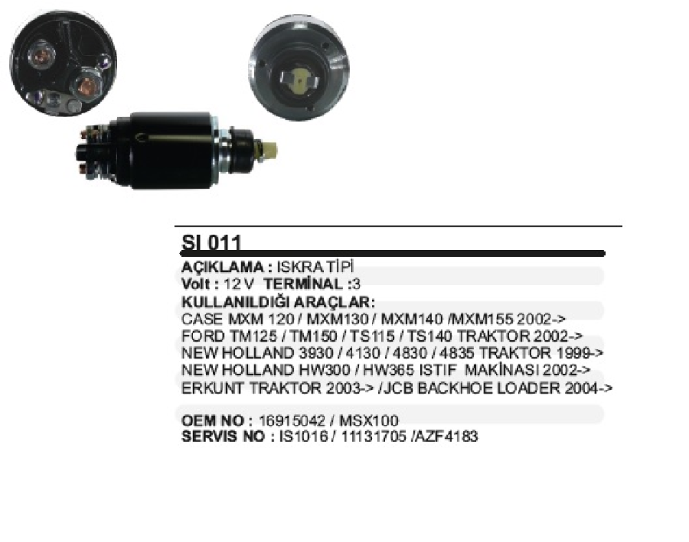 MARŞ OTOM. 12V.NEW HOLAND/ERKUNT/JCB/MF HİNDİSTAN. FISLI CİVATANIN BİRİ M10 BİRİ 8 REMA-SI011