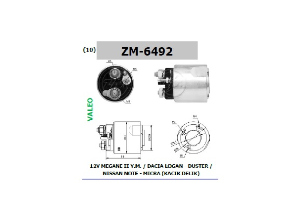MARŞ OTOM. 12V VALEO TİPİ RENAULT CLIO 1.4L 16V 2000-2005 1.6 16V-RENAULT MEGANE 1.4 16V 1.6 16V-MEGANE SCENIC 1.4 16V 1.6 16V-RENAULT KANGOO 1.6 16V-DACIA LOGAN-DACIA SANDERO-DACIA DUSTER 3 DELİK VİDALİ ZM-6492
