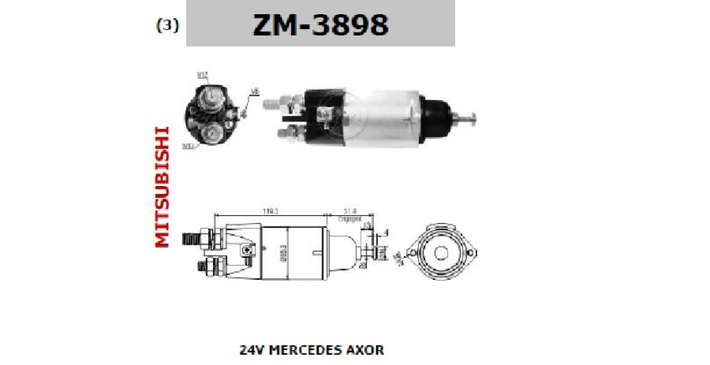 MARŞ OTOM. > 24V.MITS.TİPİ MERCEDES AXOR II 1824-1833-2528-2428 2004-->2015 (CEYRAN UCU 19 CİVATA - YASTIK UCU 17 CİVATA) ZM-3898