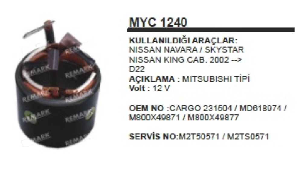 MARŞ YASTIĞI+GÖVDESİ 12V MİTS. TİPİ 02->NAVARA/SKYSTAR MYC1240