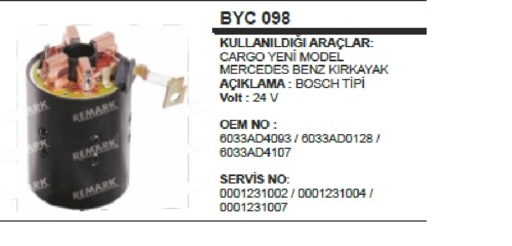 MARŞ YASTIĞI+GÖVDESİ 24V BOSCH TİPİ FORD CARGO MERCEDES BENZ KIRKAYAK ACTROS-AXOR-DAF- IVECO -SCANIA BYC098
