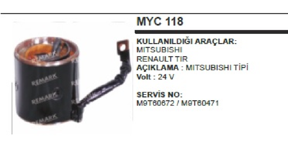 MARŞ YASTIĞI+GÖVDESİ 24V MITS.RENO TIR/ KARGO ÇAP:90mm ORTA BOY:85mm BOY:94mm KÖMÜR ÖLÇÜLERİ: 8mmX30 MYC118