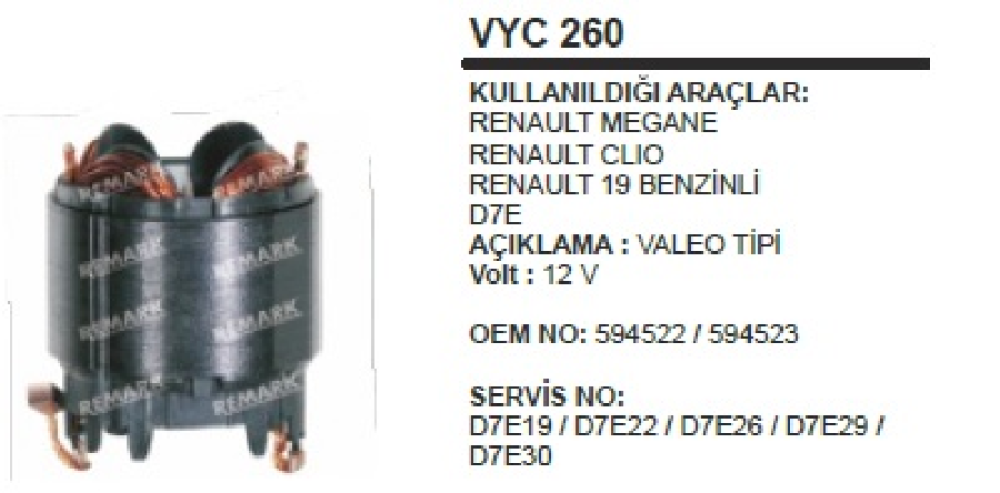 MARŞ YASTIĞI + GÖVDESİ VALEO TIPI 12V D7E RENAULT 19 CLIO,MEGANE/SKODA BENZİNLİ VYC260