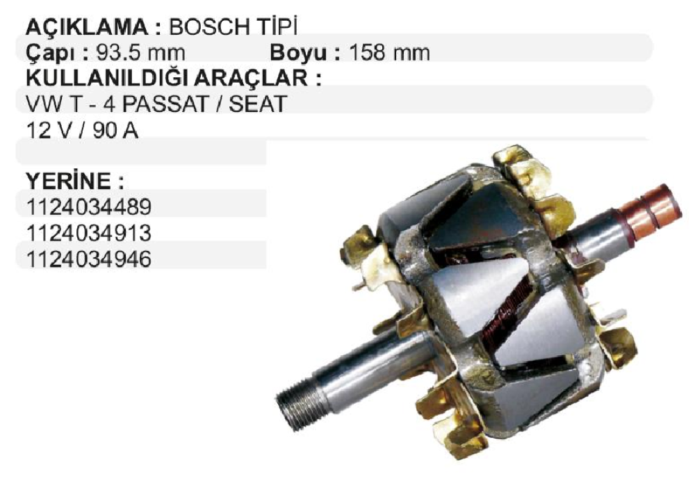 ROTOR BOSCH TİPİ 90A 12>TRANSPORTER-PASSAT/SEAT REMA-XRT731