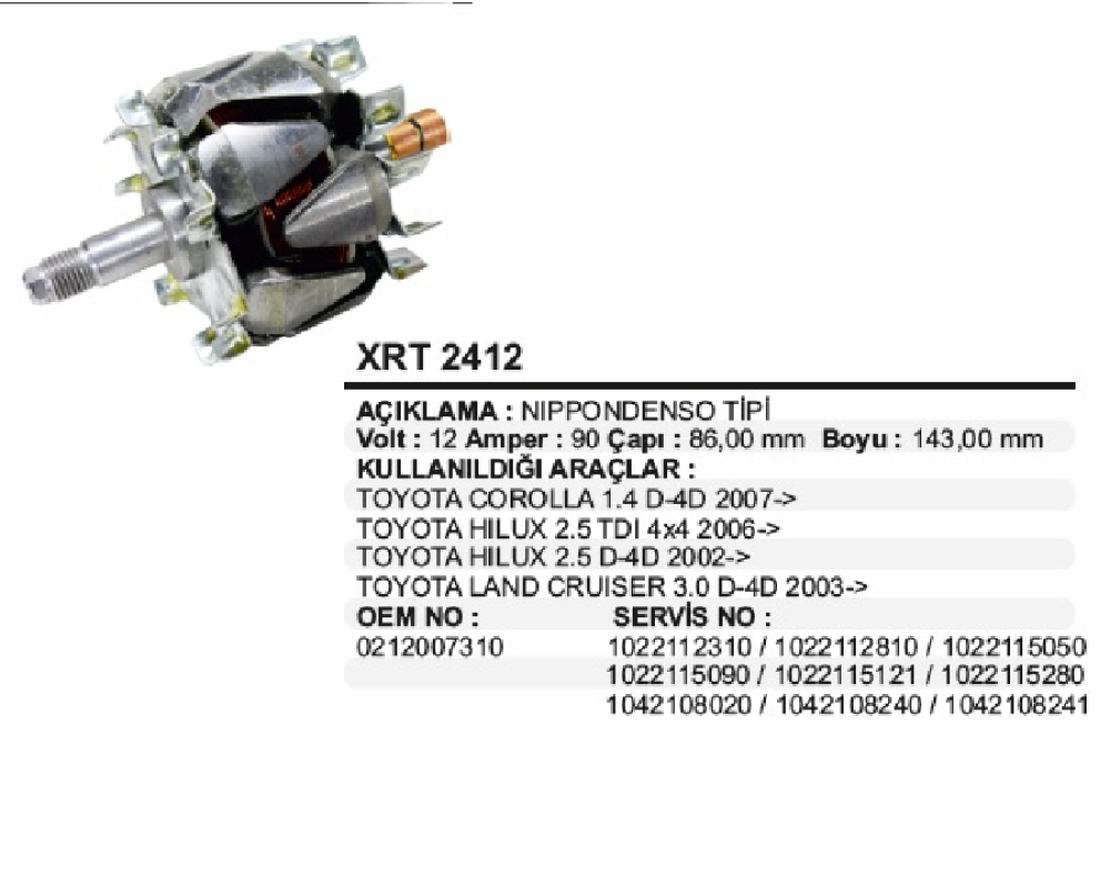 ROTOR N.DENSO 12V.90A HILUX/COROLLA 4D4 REMA-XRT2412