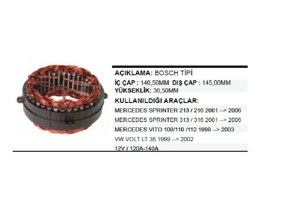 STATOR BOSCH 12V.120/140A SPRINTER/VW REMA-ST237