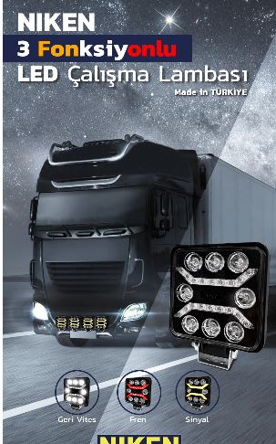 çalışma Lambası 9v - 48V 3 Donksiyonlu beyaz Aydınlatma Sarı (Sinyal), Kırmızı (Stop)