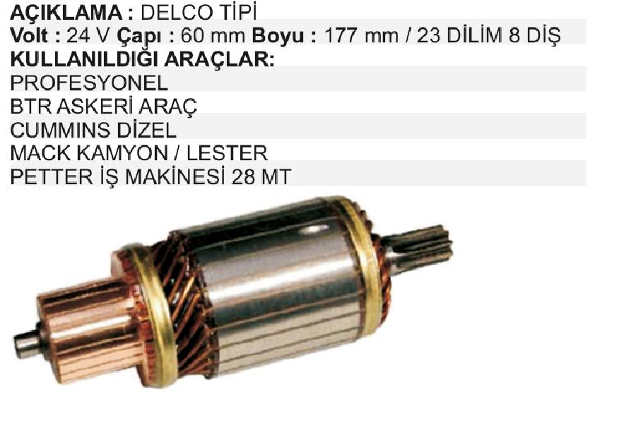 MARŞ KOLL. DELCO NIKKO TIPI 24V 28 MT BMC PROFESYONEL*M.B.ATECO BOY:177 CAP:60,2 DIS:8 DILIM:23 RULMANSIZ REMA-IM3018