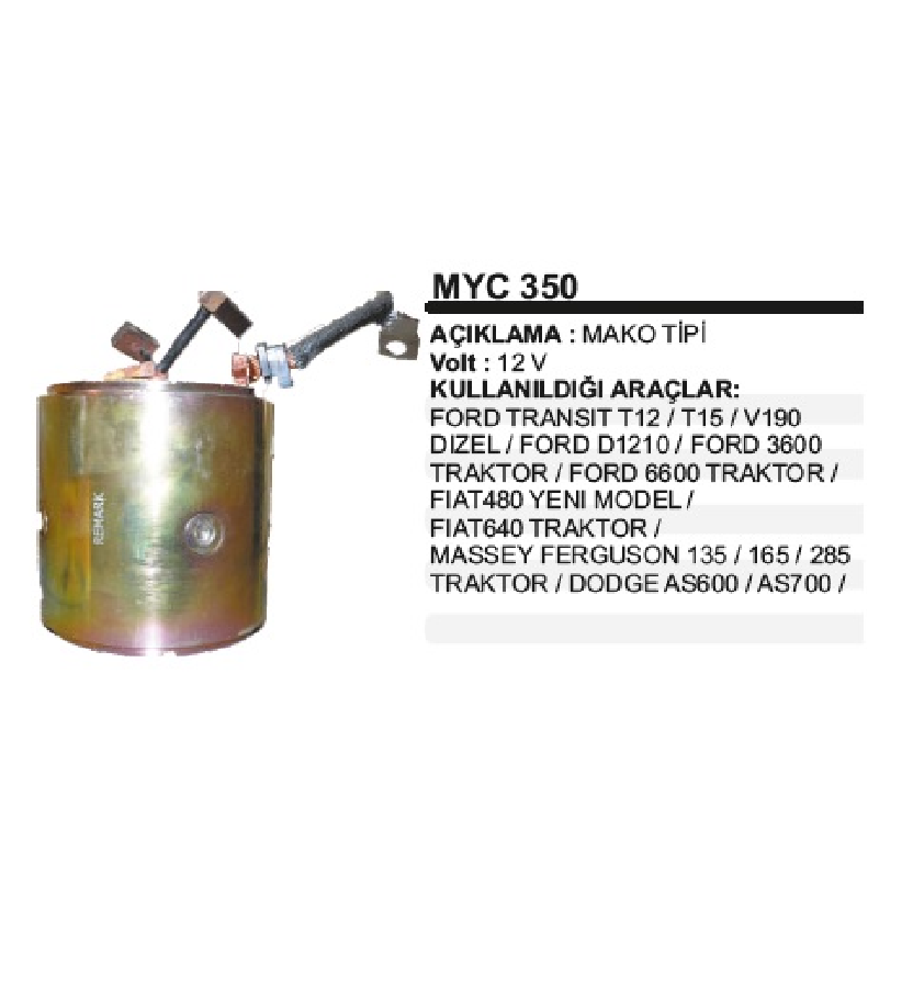 MARŞ YASTIK+GÖVDE MAKO TİPİ 12V.BSX71 KÖMÜRE GÖRE FORD TRANSİT T12-T15-V190 DİZEL,D1210,FORD 3600-6600 TRAKTÖR,FİAT480 YM 640 -MF135-165-285,DODGE AS600-AS700 REMA-MYC350