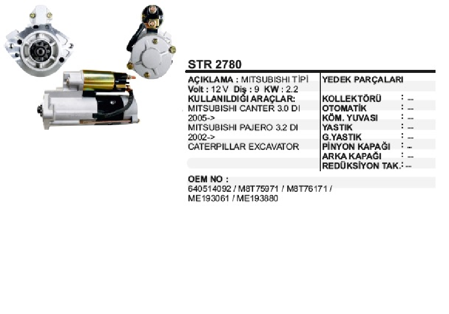 MARŞ MOTORU12V 2.2KW 9D MITSUBISHI PRESTİJ OTOBUS/FUSO/ 859 CANTER/PAJERO REMA-STR2780