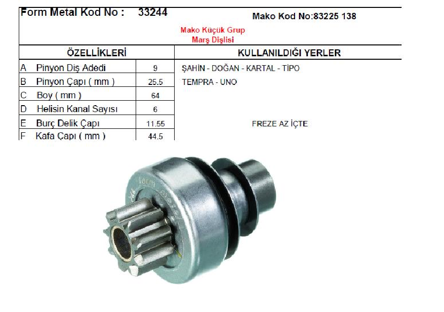 MARŞ DİŞLİSİ MAKO MARELLİ TİP 9D>TEMPRA=97-TIPO-UNO-DOĞAN-KARTAL FIAT BRAVA 1.4,1.6,PANDA YOUNG 33244