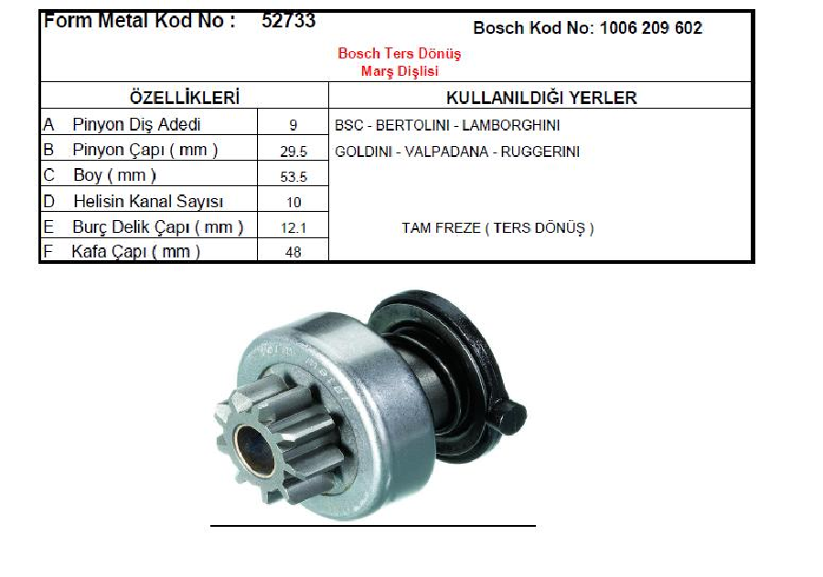 MARŞ DİŞLİSİ 9D-10K >BOSCH TİPİ CCW TERS DÖNÜŞ ANADOLU MOTOR JENARATÖR LOMBARDINI GOLDINI 52733