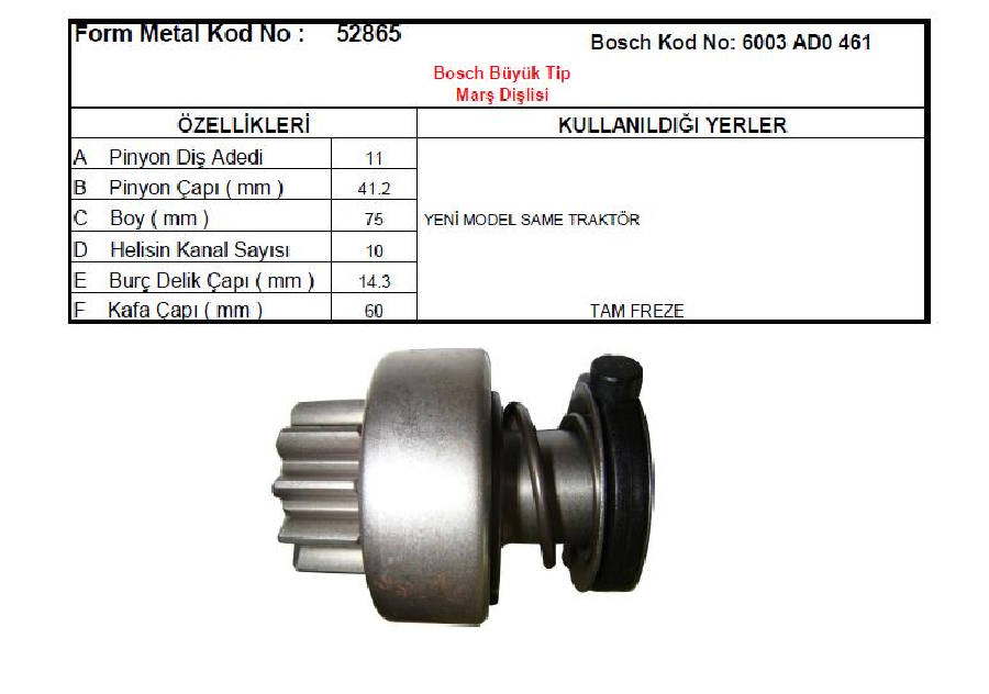 MARŞ DİŞLİSİ 11D BOSCH TİPİ YENİ MODEL SAME TRAKTÖR 52865