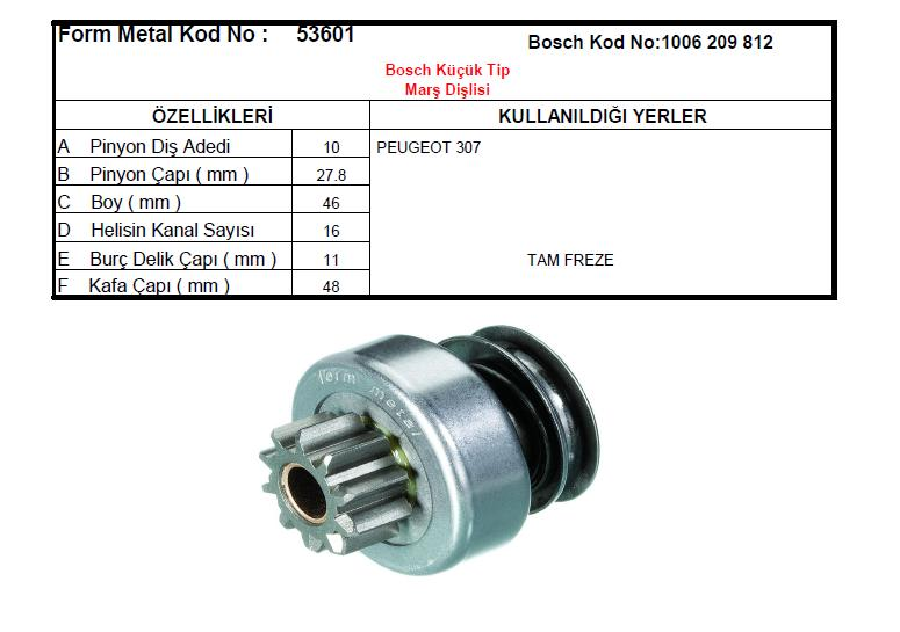 MARŞ DİŞLİSİ 10D-16K BOSCH TİPİ TAM F>PEUGEOT.307 PARTNER 53601