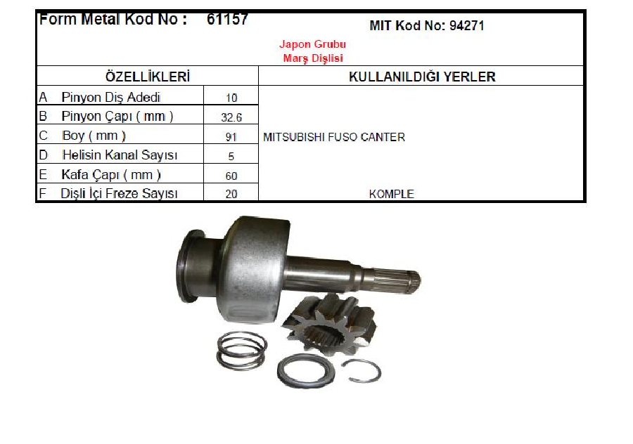 MARŞ DİŞLİSİ 10D MİTSUBİSHİ TİP ÇUKUROVA FORKLİFT (CANTER YM DİŞLİNİN KISASI) MITS.FUSO CANTER FE/FG 3,9L 61157
