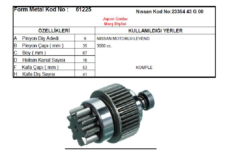 MARŞ DİŞLİSİ 2 BİLYALI 9D> HİTACHİ TİPİ LEVEND/NISSAN 3000 61225