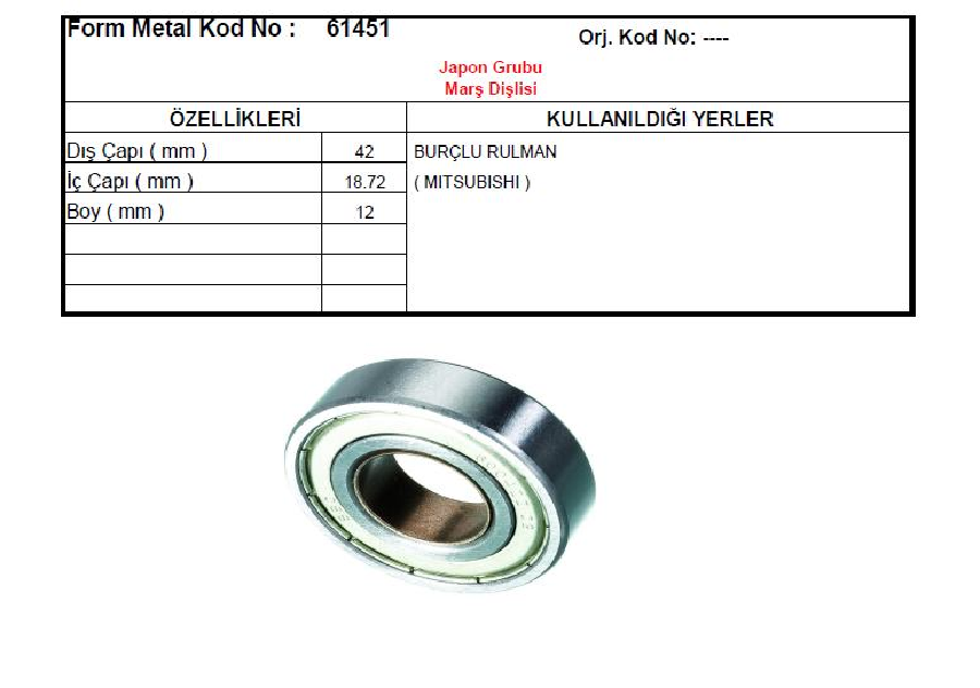 MARŞ DİŞLİSİ TM TK BURÇ&RULMAN>MITSUBISHI CANTER 61451