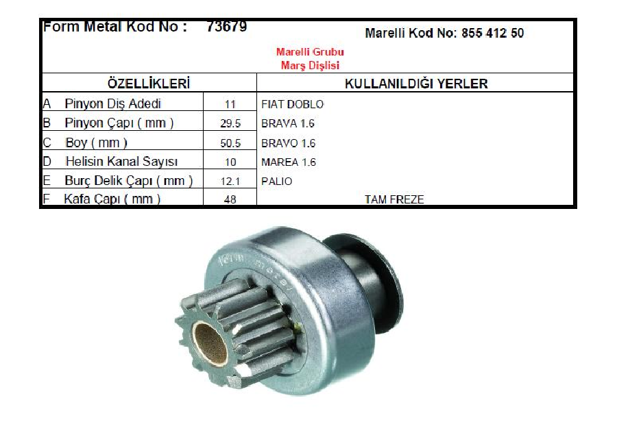 MARŞ DİŞLİSİ 11D.TAM FREZE MAKO TİPİ FİAT DOBLO/ BRAVO BRAVA MAREA 1,6 / PALİO 73679