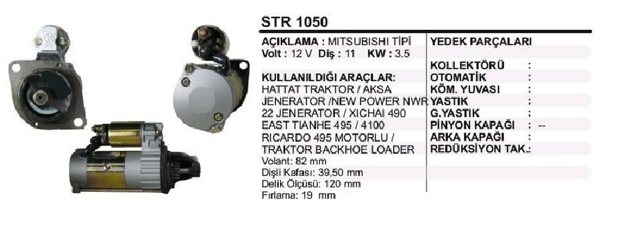 MARŞ MOTORU MITS 12V 11D 3.5 KW HATTAT/AKSA/BACKHOE LOADER STR1050