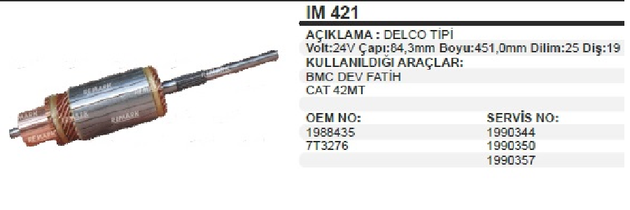 MARŞ KOLL. DELCO TIPI 24V 42MT DEV FATIH - CATERPILLAR BOY:451 CAP:84.30 DILIM:25 IM421