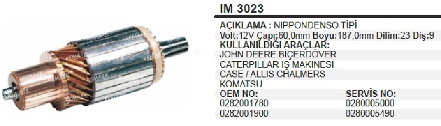 MARŞ KOLL. 12V.KOMATSU-J.DEERE-CAT-ALLIS ÇAP:60mm BOY:187 23DİLİM 9DİŞ IM3023