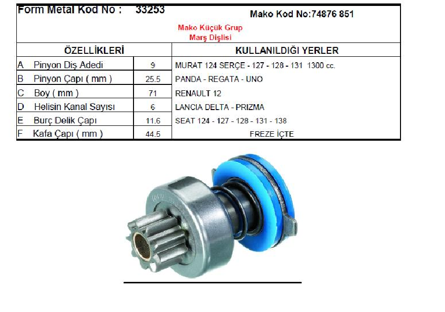 MARŞ DİŞLİSİ 9D> MAKO TİPİ M,124-M,131/REN,12 LANCİA RENAULT MAKO-74876851