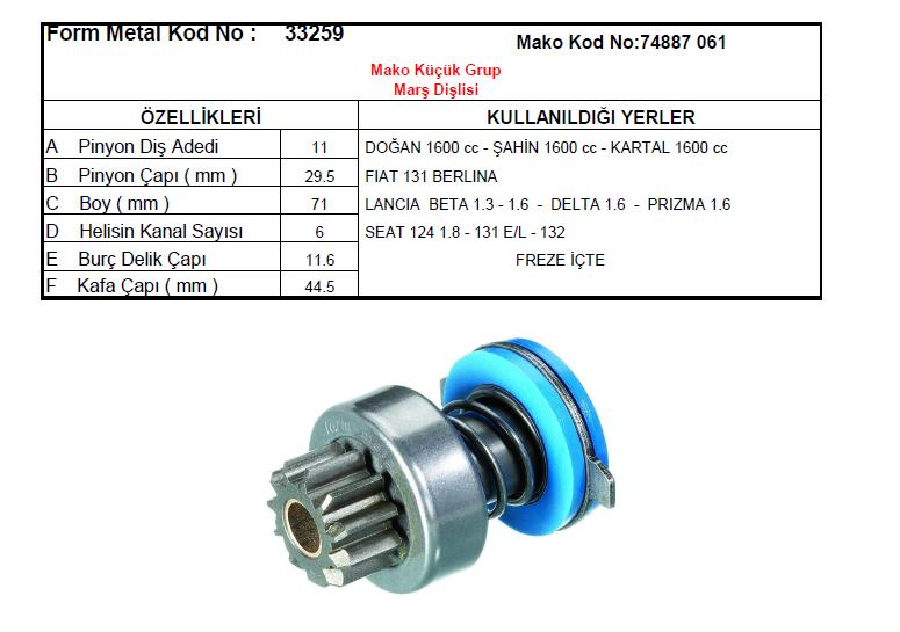 MARŞ DİŞLİSİ MAKO TİP 11D>DOĞAN-KARTAL-ŞAHİN MAKO-74887061